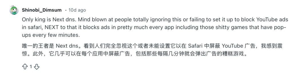 用了半年 NextDNS,其体验确实好于浏览器级的广告屏蔽插件。