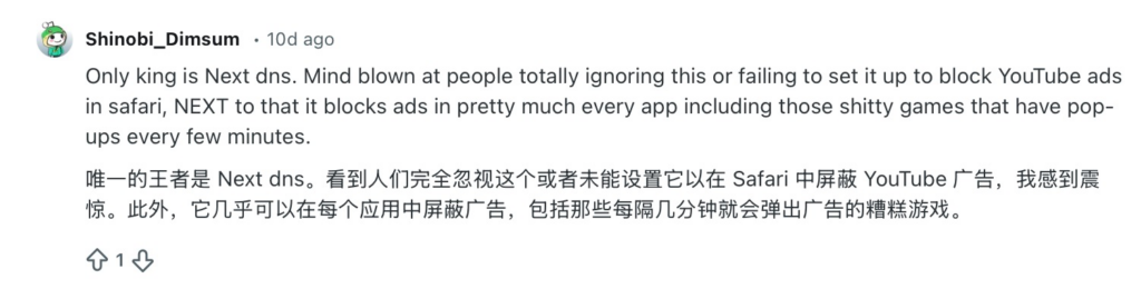 我之前写过一篇博客介绍NextDNS。它本质上是一款很轻量化的 DNS 服务,提供广告和跟踪器拦截,恶意软件防护,及高度可定制的过滤功能。最近发现它还有一个被低估的优点:在某些场景下,能顺手屏蔽应用内广告。